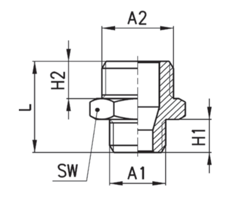 Hex nipple para sa pagkonekta ng dalawang may sinulid na tubo o fittings at pagpapalawak ng haba ng pipe, hexagonal middle section para sa paghigpit ng isang wrench.