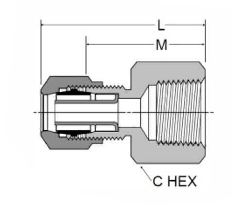Ang NPTFCL1466-4A1 ay isang tuwid na conector ng puwit na nagtatampok ng 3/8 in. Pipe thread sa bawat dulo, na may isang 1/16 in. Nut na kasama sa bawat panig.